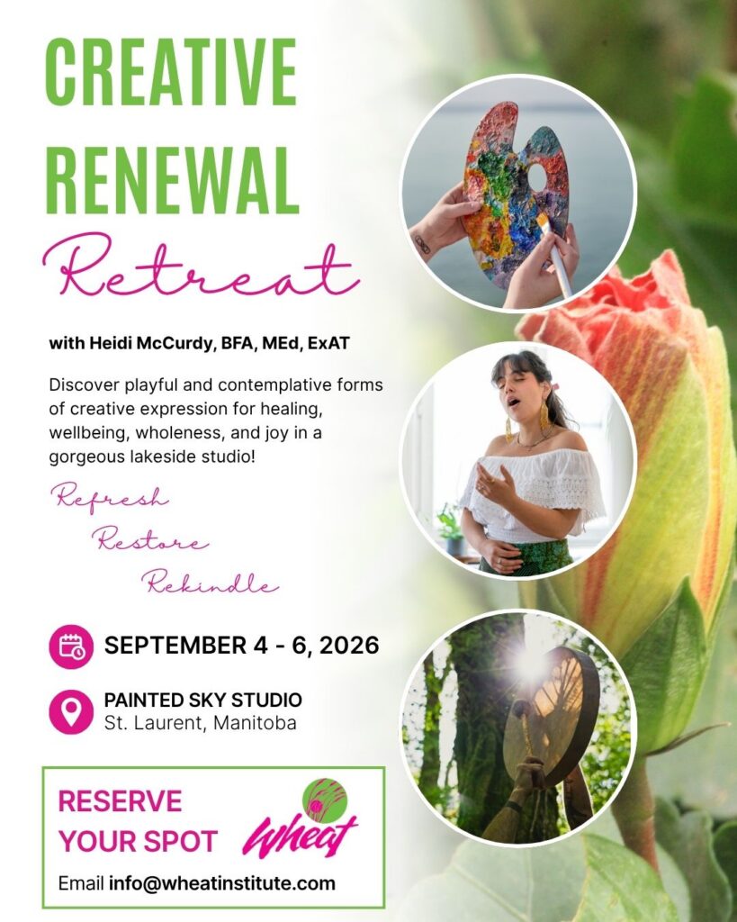 We are pleased to announce our second personal growth workshop: Creative Renewal Retreat facilitated by Heidi McCurdy, BFA, MEd, ExAT.