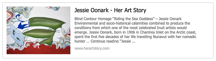 When I was a child, my grandmother collected calendars of Inuit art. The images were eye catching to me given their often stark, curved lines and minimalist presentation: quite different from the images I was accustomed to seeing my grandmother paint, which included primarily naturalistic prairie scenes and portraits. Jessie Oonark was the artist whose name stood out to me, and I recall in particular an image of an owl created by an Inuit artist, whose name I later learned was Kenojuak Ashevak. How true of the power of art to immortalize: that image has a permanent residence in me. Seeing the work of these brilliant women today takes me right back to moments spent with my grandmother appreciating art. I see the influence of women artists on each other over time. On Marlene Lowden’s website Herstory, she allows the work of the great women artists she explores to inspire her own art in her Blind Contour Homage Series.
