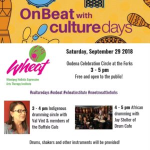 WHEAT Institute is very excited to be included among more than 7,500 free activities that are already registered to take place in some 900 communities across Canada as part of the 9th anniversary of Culture Days happening on September 28, 29 and 30, 2018. This year’s theme is “On Beat”, drumming and rhythm inspired activities.