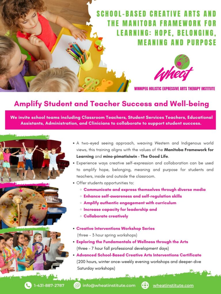 The School Based Creative Arts offerings are designed for school-based teams including classroom teachers, educational assistants, student services teachers, administration, and clinicians.